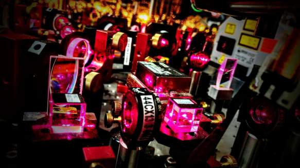 One possibility to experimentally implemented - in a very simplified way - a controlled quantum system is to shine laser light on quantum particles. Photo by Apoorva Hedge.