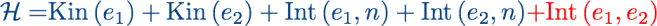 After having found an interesting research question, a mathematical representation of the problem is required. This is usually done by setting up the Hamiltonian, which is a formula containing all the relevant information about the physical system. One illustrative example of a quantum many-body Hamiltonian is the Helium atom, which is fundamental to the understanding of molecules and their quantum features. Helium has only two electrons on his atomic shell and a nucleus with two protons and two neutrons. In principle, the Hamiltonian consists of its characteristic energies. On the one hand, there is the kinetic energy Kin(ei) for the two moving electrons and, on the other hand, there is their individual binding to the nucleus, leading to the interaction energies Int(ei,n) – which is simply given by their electric attraction due to the nuclei’s positive and the electron’s negative charge.